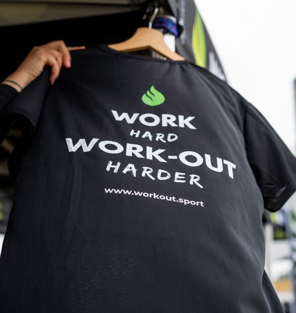 Show your drive, your style, and your team spirit with this original Work-Out sports shirt. Designed for the gym, your next run, or race day.